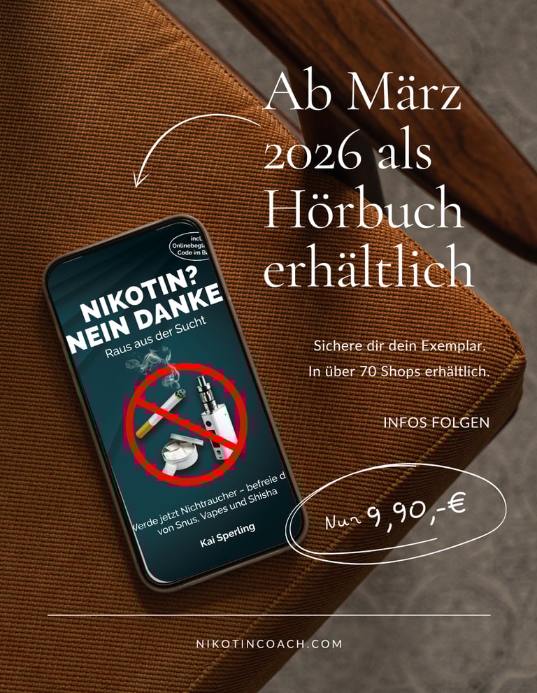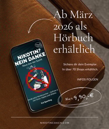 Als Nikotincoach biete ich Dir einen einfachen und günstigen Weg, um mit dem Rauchen, dem Konsum von Vapes, Snus, oder Shisha aufzuhören und ein Leben ohne Nikotin zu beginnen. Mein Ziel ist es, Dir dabei zu helfen, Deine Ziele zu erreichen und ein gesünderes Leben zu führen.